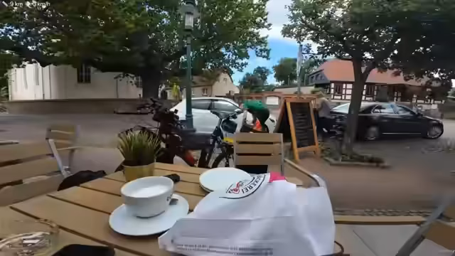 01:13:25Bei Kilometer 12 hält der Streamer für eine längere Frühstückspause in einer Landbäckerei. Er stärkt sich mit einem Tomaten-Mozzarella-Brötchen, einem Pfannkuchen und einem Cappuccino. Gleichzeitig wird ihm bewusst, dass das Tagesziel Rostock mit 140 Kilometern Reststrecke bei der aktuellen Durchschnittsgeschwindigkeit und der späten Uhrzeit unrealistisch erscheint. Der Fokus verlagert sich vom Erreichen des veganen Dönerladens in Rostock eher auf eine sichere Ankunft, eventuell mit einer Übernachtung in der Stadt Güstrow.