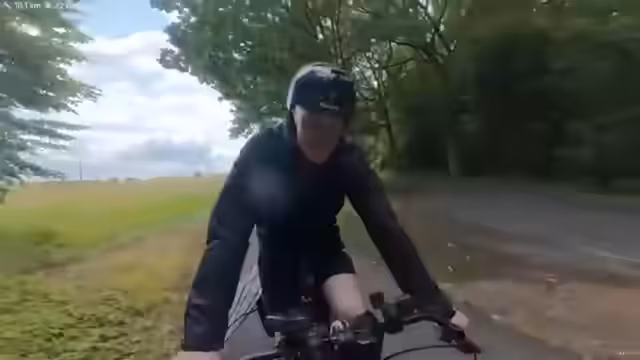 00:43:08Nachdem die Strecke wieder passierbar ist, nutzt der Streamer die Pause für technische Experimente. Er testet das Drohnenfliegen während des Radfahrens, um den Zuschauern spektakuläre Luftaufnahmen der Landschaft zu bieten. Das Manöver ist faszinierend, aber auch riskant, da die Drohne fast in einen Baum fliegt. Neben diesen technischen Highlights genießt er auch die Natur, macht eine Pause am Schwarzen See mit Fischerhütte und filmt, wie er eine alte Landstraße fährt, die an die römische Via Appia erinnert.