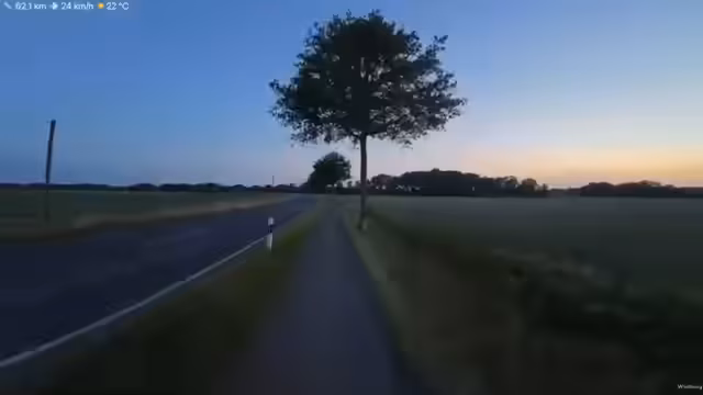 06:31:24Das heutige Ziel ist Bremen, das etwa 100 Kilometer entfernt ist. Der Streamer plant, trotz der späten Uhrzeit und des Hungergefühls durchzufahren und unterwegs bei einem geöffneten Supermarkt einzukaufen. Er denkt über alternative Übernachtungsmöglichkeiten wie Hannover oder einen Besuch bei einem Chat-User nach. Die Tour führt durch die Nacht, wobei Hitze, Fliegen und blendende Sonne eine Belastung darstellen. Die Route ist nun ländlicher und entspannter.