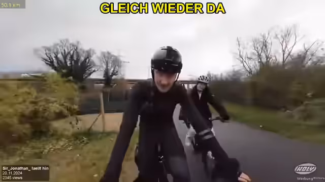 00:00:25Die Fahrradtour beginnt in der Stadt, wobei unmittelbar nach dem Start ein lautes Knackgeräusch zu hören ist, das der Streamer als möglichen Achsenbruch identifiziert. Kurz darauf kommt es zu einem weiteren unangenehmen Knallgeräusch. Die Tour führt dann durch ländliche Gebiete, wobei das Team auf einem sandigen Weg fast einen Unfall mit einem Auto nur knapp vermeidet. Der Stream wird von mehreren technischen Problemen überschattet: Das Telefon fällt auf den Boden, beginnt zu flackern und bleibt schließlich mit nur noch 20 Prozent Akku auf Rot, was die Fortführung des Streams gefährdet.