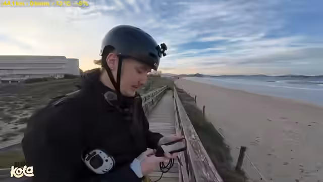 04:43:44Der Streamer erreicht sein Ziel, den Meerstrand in der Nähe von Can Picafort. Er ist von der美景 beeindruckt und freut sich auf denkbare Aktivitäten wie Surfen. Kurz danach treten technische Schwierigkeiten auf, da das Router-Kabel zu funktionieren scheint, aber die Verbindung instabil bleibt und der Stream kurz unterbrochen wird.