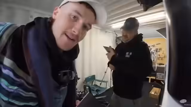 01:40:59Der Streamer zeigt sich begeistert von Tjorvens Werkstatt und lobt die stetigen Verbesserungen. Er erinnert sich daran, wie früh er von den Plänen wusste, die geheim gehalten wurden. Tjorven erzählt von Unterstützung aus seiner Community, die ihm Werkzeug geschenkt hat. Der Streamer gibt den ausgeliehenen Fahrradcomputer zurück, den er für seine Tour nach Köln benötigt hatte. Er lobt die einfache Bedienung des Geräts und erwähnt, dass er sich nun selbst einen gekauft hat. Es wird überlegt, wo die mitgebrachte Autogrammkarte aufgehängt werden soll. Tjorven erklärt die Bedeutung der Spoke-Cards von Alleycat-Events und die Idee, so etwas im Stream zu veranstalten. Der Streamer äußert den Wunsch, aus der Werkstatt zu streamen und fragt nach Tipps für die Einrichtung. Abschließend sprechen sie über die bevorstehende Camper-Tour des Streamers und testen verschiedene Kameraperspektiven.