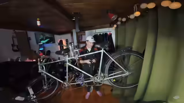 00:00:57Es wird das eigene Giant-Mountainbike vorgestellt, das mit einem breiten Lenker, Halterungen für Drohne, Handy-Navi und Stativ sowie Gepäckträgertaschen und Gabeltaschen ausgestattet ist. In den Gabeltaschen befinden sich Unterhosen und Badehose, während die Drohne vorne platziert ist und Werkzeug mit Öl transportiert wird. Es folgt ein kurzer Rückblick auf einen Italien-Trip am 9. Dezember, inklusive eines Bades im Meer. Außerdem wird eine skurrile Szene beobachtet, in der eine maskierte Person vermeintlich einen E-Scooter-Akku stiehlt. Danach wird ein kurzer Blick auf die Umgebung geworfen und die weitere Route gescoutet. Es folgt ein kurzer Ausschnitt, in dem der Streamer ein Spiel gewinnt und anschließend skurrile Äußerungen tätigt, bevor er seinen Bauch in verschiedenen Zuständen präsentiert. Abschließend wird ein Tandem entdeckt, das stabil wirkt und Platz für eine dritte Person bietet.