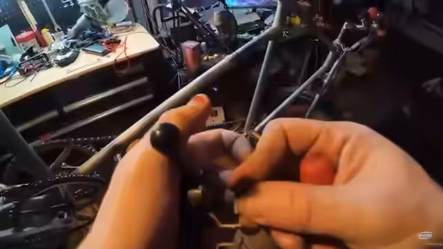 02:48:33Der Fokus verlagert sich auf den Gepäckträger, der mit einer speziellen Schraubenkonstruktion am Rahmen befestigt ist. Nachdem der Streamer eine längere Schraube und eine umgedrehte Mutter entfernt hat, gelingt es ihm, den gesamten Gepäckträger abzunehmen. Anschließend wendet er sich der Bremse zu, einer sogenannten Trommelbremse, und beschäftigt sich mit dem Problem der fest sitzenden Bremskonstruktion, die das Entfernen des Hinterrads zunächst verhindert.