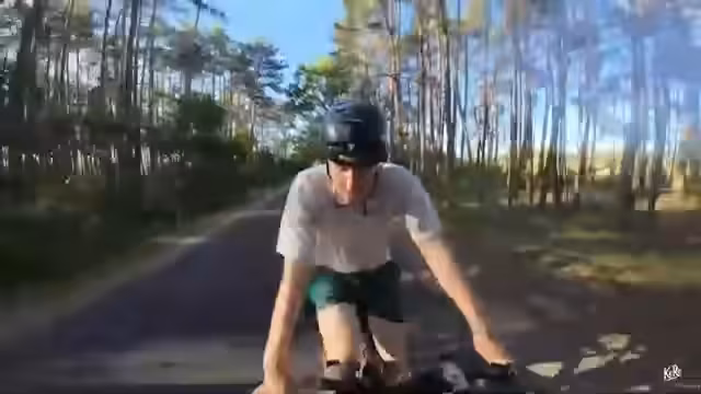 01:53:26Die Route führt die beiden zum Müggelsee, wo sie an einem Badestrand anhalten. Erinnerungen an eine Winter-Tour um den See wachgerufen. Leo berichtet von einem vor Jahren gestohlenen Rad, das sein Vater aus Einzelteilen gebaut hatte. Die aktuelle Fahrgeschwindigkeit wird als angenehm und kraftsparend beschrieben, insbesondere nachdem das anfängliche Tempo erreicht wurde. Das Gefühl, schnell und mühelos zu fahren, wird hervorgehoben.