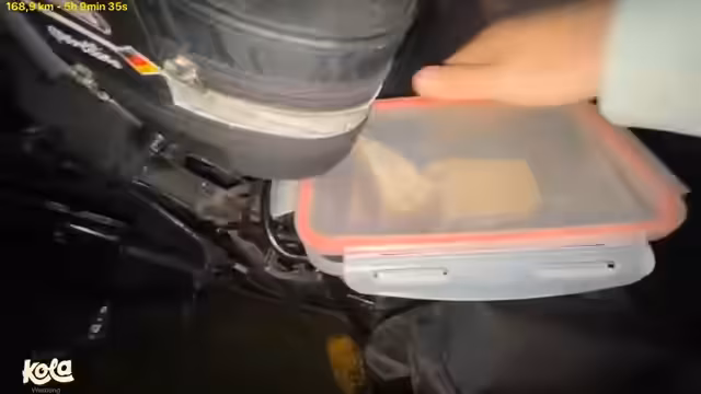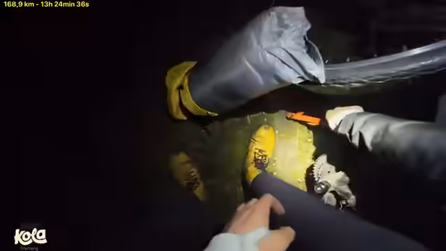 03:12:54Der Fahrer präsentiert sein Equipment, ein altes Mountainbike aus den 90er Jahren, das umgebaut wurde. Die Versorgung besteht aus Datteln und Knirps-Cola als Kohlenhydratquelle. Die Strategie ist, nicht auf Geschwindigkeit oder Kilometer zu achten, sondern nach Gefühl zu fahren. Akkuersparnis ist entscheidend, um die Kamera die ganze Zeit am Laufen zu halten.