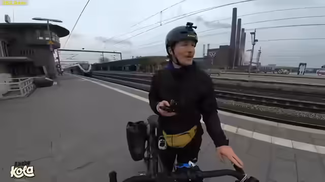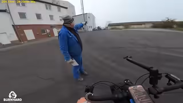 00:37:34Während der Fahrt treten Probleme mit den Fahrradtaschen auf, die ständig abzufallen drohen. Zudem gibt es Schwierigkeiten mit der Handy-Akkulaufzeit und dem Mikrofon, da es im Nieselregen nass wird. Der Streamer muss improvisieren, um seine Ausrüstung zu schützen und Energie zu sparen. Die Route wird ohne digitale Karten gefahren; stattdessen orientiert er sich an einem Kompass und fragt nach dem Weg bei Anwohnern, um die Challenge authentisch zu gestalten.