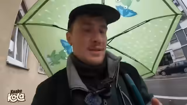 03:30:05Wegen anhaltenden Regens kauft der Streamer bei Rossmann einen Frosch-Regenschirm für 3,99 Euro. Das als Kindermodell erworbene Accessoire wird sofort getestet, entpuppt sich aber als zu klein und instabil. Es folgt eine längere Diskussion über die Ineffizienz von traditionellen Regenschirmen. Der Streamer entwickelt kreative Alternativen wie einen Regenschirm-Hut und bezeichnet konventionelle Schirme als 'veraltete Technik'.