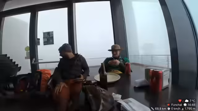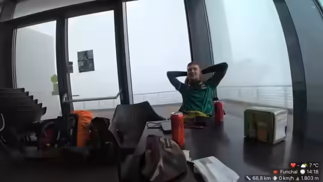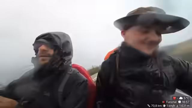 07:29:00Bei der Wanderung auf Madeira geraten die Streamer in einen heftigen Sturm, der als Orkan beschrieben wird. Die gesamte Ausrüstung, einschließlich Handys und Kameras, ist stark betroffen. Die Technikprobleme häufen sich: Bildschirme werden unbrauchbar, Mikrofone sind nass und die Verbindung zum Chat bricht häufig ab. Trotzdem bleibt der Streamer humorvoll und versucht, die Situation meistern, während sie sich in den Bergen bei schlechtem Wetter fortbewegen.