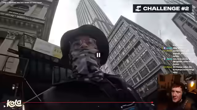 02:12:13Die Hunter erhalten Informationen über die nächste Challenge, die am Times Square stattfindet. Kontaktpersonen werden vermutet, die den Spielern etwas übergeben sollen. Alle Hunter außer der Einsatzleitung müssen an dieser Challenge teilnehmen und dürfen die Zone nicht verlassen. Die Hunter jagen in Zweierteams und sollen einen Spieler fangen, der dann ins Headquarter gebracht wird. Es wird spekuliert, ob die bereits gefangenen Spieler als Kontaktpersonen eingesetzt werden. Die Hunter-Teams erhalten Runner-Handys, die die Standorte der Spieler alle fünf Minuten anzeigen, während die Hunter selbst nicht getrackt werden. Die Taktik der Hunter ist es, die Challenge Zone kreisförmig einzukreisen und die Spieler zu observieren, bis sie sich mittig positionieren, um dann koordiniert zuzugreifen. Etta, verkleidet als Bauarbeiterin, ist auf dem Weg zum Times Square und plant, ihren Rucksack zu verstecken, um unauffälliger zu sein. Sie bemerkt, dass die GoPros an den Outfits der Spieler am auffälligsten sind. Die Hunter sind motiviert, die Spieler zu fassen, insbesondere nachdem sie bereits drei Spieler erfolgreich gefangen haben.