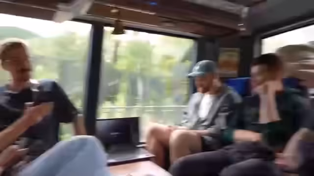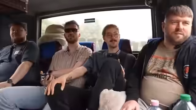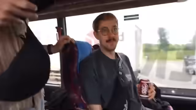 04:46:32Nach der intensiven Busfahrt geht es zur Überführung zum Campinggelände. Die Streamer organisieren das Gepäck und planen den weiteren Abend. Es werden unterschiedliche Zelttypen gezeigt und die Logistik für den Aufenthalt erklärt. Die Stimmung ist gelassen und entspannt, nachdem die Aufregung der Fahrt vorbei ist.