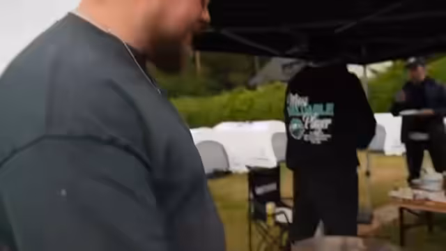 06:16:45Der Streamer beschreibt die Camp-Atmosphäre, die Organisation des Team-Camps mit Pavillon als 'Thronsaal' und die Müllentsorgung. Es gibt Diskussionen über die Benennung von Gegenständen wie 'Palette' oder 'Tray' sowie geplante Aktivitäten wie Bierball-Funkyball. Besonders erwähnt wird Vasili, dessen Frau möglicherweise ein Kind bekommt und der die Nummer des Streamers hinterlässt, falls er nicht erreichbar ist. Die Stimmung im Camp ist entspannt, aber es gibt auch Herausforderungen durch Regen und organisatorische Probleme.