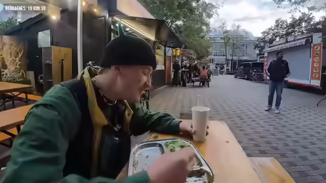 03:04:15Der Streamer genießt Streetfood am Ostbahnhof, darunter Palak Panier und Bubble Tea. Er zeigt ein altes Bild von sich auf einer Elektroschwalbe und teilt ein gezeichnetes Bild von einem Hasen auf einem Motorrad. Er betont, wie cool es ist, alte Bilder zeigen zu können und lobt die Funktion, das Handy einzublenden. Er findet die Funktion, Apps im Stream zu zeigen, einen Gamechanger mit viel ungenutztem Potenzial. Er genießt die Bierbank-Atmosphäre am Ostbahnhof und erinnert sich daran, dort schon mit Freunden gewesen zu sein. Er spricht über die Schnelllebigkeit der Zeit und dass bald Weihnachten ist. Er kündigt eine unglaubliche Ankündigung für morgen an.