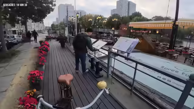 02:39:29Der Streamer findet den Geocache unter einer Reling, versteckt unter Spinnweben. Erleichterung und Freude über den Fund sind groß. Er loggt den Fund und trägt ihn ein. Die Karte zeigt viele weitere ungelöste Caches, die er finden möchte. Er entdeckt einen Cache auf dem Wasser, der illegalerweise mit einem Schlauchboot erreicht wurde. Der Streamer erhält Freundschaftsanfragen und macht Call-to-Actions für Twitch Prime. Er spricht über die Einschränkungen für Paddelboote auf der Spree und erinnert sich an Zeiten, in denen das Paddeln dort erlaubt war. Er äußert den Wunsch, wieder auf der Spree paddeln zu dürfen und erwähnt hohe Strafen für Verstöße.