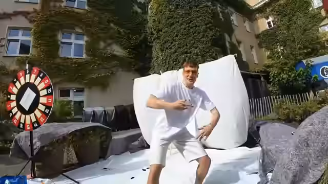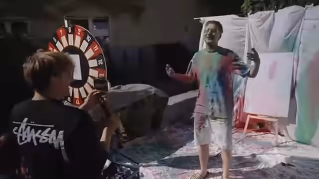 00:35:17Die Farbbomben-Aktion beginnt, bei der Zuschauer für fünf Euro auf ein Glücksrad drehen können, um eine bis fünf Farbbomben zu gewinnen, die sie dann auf den Streamer werfen dürfen. Der erste Kunde, Julian, dreht am Rad und gewinnt zwei Farbbomben. Es stellt sich jedoch heraus, dass die Farbbomben nicht so leicht platzen, wie erwartet, was zu einigen frustrierten Würfen führt. Trotzdem wird die Aktion fortgesetzt, und die Zuschauer werden ermutigt, ihren Frust rauszulassen und so fest wie möglich zu werfen. Es werden verschiedene Wurftechniken ausprobiert und die Zuschauer werden angefeuert, ihr Bestes zu geben. Auch Elop kommt vorbei und beteiligt sich an der Aktion, aber auch er hat Schwierigkeiten, die Bomben zum Platzen zu bringen. Es wird überlegt, wie die Bomben besser zum Platzen gebracht werden können, und verschiedene Ideen werden diskutiert, wie zum Beispiel das Anbringen von Reißzwecken oder das Verwenden einer Schleuder.