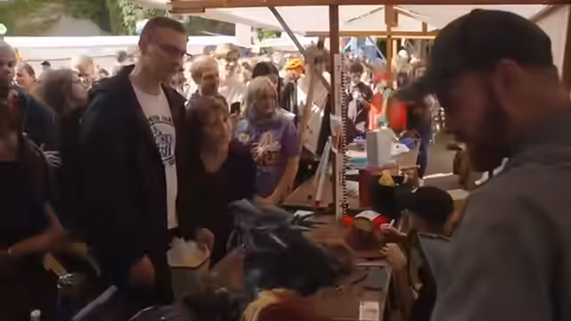 00:18:00Es wird auf die Spendenaktion für Tiere auf Betterplace.org hingewiesen, die im Chat und unter dem Videoplayer verlinkt ist. Zudem wird eine Auktion angekündigt, bei der die einzelnen Items erst freigeschaltet werden, wenn bestimmte Spendensummen erreicht wurden. Der Streamer besucht die Nachbarstände, darunter den von Fassler, einem Flowmax Streamer, der DVDs, Videospiele und Gameboys verkauft. Ein weiteres Highlight ist der Stand von Franzi und Chris, die Merchandise-Artikel anbieten, darunter einen alten Pornhop-Pulli und Lootboxen. Fischkopf präsentiert seine musikalischen Dienstleistungen, wie das Aufnehmen von Weck- und Klingeltönen oder das Produzieren von Freestyle-Songs gegen Bezahlung für den guten Zweck. Es wird auch ein Stand mit einer kunterbunten Kunstaktion vorgestellt, bei der man gegen eine Spende mit Farbbomben werfen kann. Der Streamer interviewt seine Nachbarn, darunter einen Künstler, der Porträts malt.