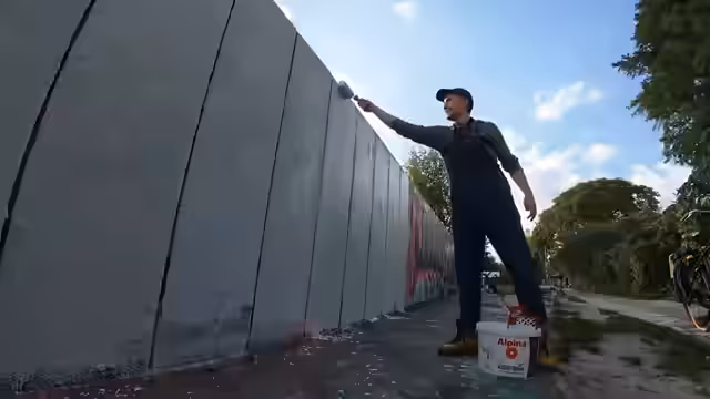 00:34:09Auf dem Weg zu einem Baumarkt, um die benötigte Farbe und einen Farbroller zu kaufen, wird der Kauf von Farbe im Wert von 12 Euro für einen 10-Liter-Eimer erwähnt. Er sucht nach der günstigsten verfügbaren Option und denkt über die Steuerabzugsfähigkeit der Ausgaben nach. Nach dem Kauf fährt er mit den Farbbomben und der Farbe durch Berlin, wobei er das Gewicht und den Transport auf dem Fahrrad als schwierig beschreibt.
