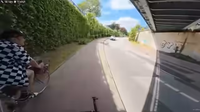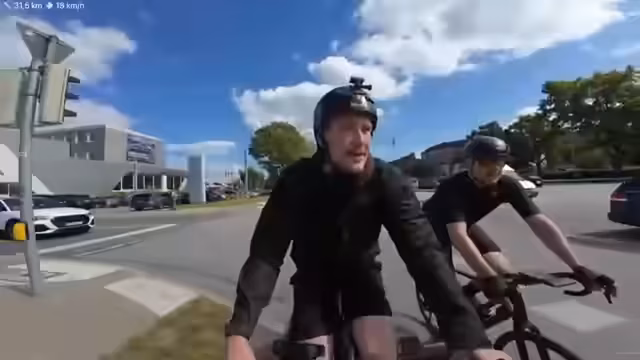 02:38:48Der Streamer begegnet einem großen Wohnmobil, das er zunächst für einen Reisebus hält. Er spricht über die Tücken des Radfahrens im Straßenverkehr und die Notwendigkeit, den Fahrradweg zu nutzen. Bei einer roten Ampel gibt es eine technische Verzögerung, die jedoch schnell behoben wird. Er erwähnt den starken Nordwind, der die Fahrt erschwert und eine Überquerung einer Straße erfordert. Einmal muss er einem entgegenkommenden Bus ausweichen, was knapp verläuft.
