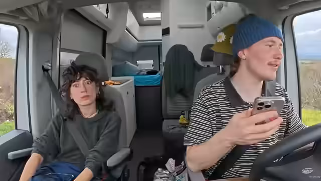 01:07:23Auf der Fahrt Richtung Carcassonne spricht das Paar über bevorstehende Abenteuer. Dazu gehören Pläne für einen Tauchschein, eine potenzielle Reise nach Indonesien, um zu schnorcheln, und Visionen von zukünftigen Camping- und Wassersportaktivitäten im nächsten Frühling. Sie überlegen auch, wie sich der Reisealltag mit dem Besitz von Tauch- und Campingausrüstung noch weiter verbessern ließe.