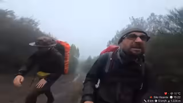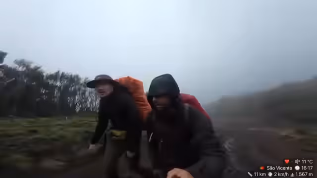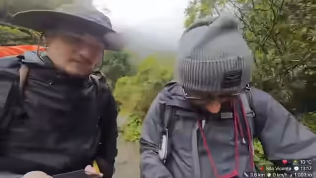 00:03:09Der fünfte Tag auf Madeira beginnt mit einem plötzlichen Wetterumschwung. Während die Streamer unterhalb der Berge in der Sonne wandeln und trocken bleiben, erwartet sie oben durchgehend Regen. Bei der Ankunft am Hotel sind die Schuhe noch feucht, und die Vorräte sind vollgesaugt mit Wasser. Die Route gestern ist komplett ausgefallen, was auf einen extrem nassen und gesperrten Wanderweg zurückzuführen ist. Thomas, ein langjähriger Einwohner Madeiras, begleitet sie und hat extra seinen Job für die Tour gekündigt.
