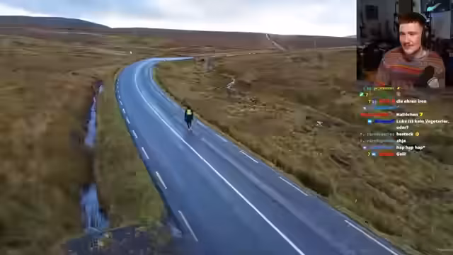 06:25:36Der Streamer schaut gemeinsam mit dem Chat eine YouTube-Serie über eine Irland-Wanderung, an der er selbst teilgenommen hat. Er erläutert, dass er 350 Kilometer davon mitgelaufen ist, und erzählt von der extremen Anstrengung des Marathons-Tempos. Währenddessen plant er bereits sein nächstes Mikroabenteuer, eine Radtour, bei der er 40 bis 50 Kilometer zurücklegen möchte. Ziel ist ein geplantes Zelten in der Natur, wobei er die Chat-Entscheidungen mit einbezieht, welche Ausrüstung er mitnehmen soll. Gleichzeitig wirbt er für ein Gewinnspiel mit einem Sportwagen.