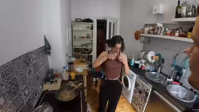 02:41:37Während des Kochens wird ein Reisgericht mit einer erdnussbasierten Sauce zubereitet, das am Ende als sehr lecker empfunden wird. Der Stream wird durch den unerwarteten Besuch eines Freundes, Gül, unterbrochen, der spontan zum Stream stößt und nach außen gehen möchte. Chat interaktiv, schreibt Gül als Türsteherin und fit checkt.