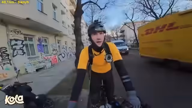 01:28:22Während der Fahrt beschreibt der Streamer seine Umgebung, darunter einen strandähnlichen Bereich mit einer Hängematte, und spekuliert über die Wassertemperatur. Er zweifelt, ob er bei der winterlichen Kälte eine Badehose tragen sollte, und bemerkt die schlechte Internetverbindung in dieser Zone. Trotz der Kälte und der Verbindungsprobleme plant er, zum Müggelsee weiterzufahren, wo bessere Bademöglichkeiten und stabilere Internetbedingungen herrschen könnten.
