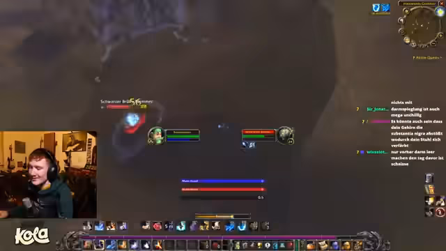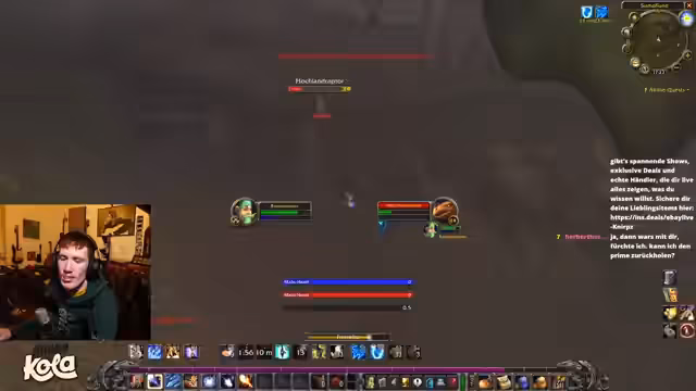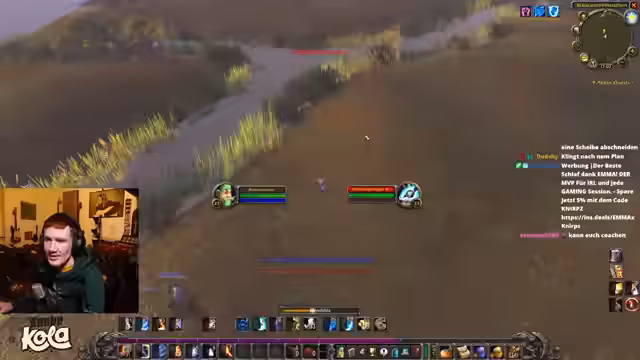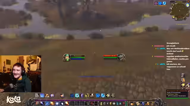 05:12:33Als Magier kämpft der Streamer mit scheinbar geringem Schaden seines Frostblitzes (62 Punkte), bis ihm Chat-Hinweise zeigen, dass er fälschlicherweise Rang 3 statt Rang 4 verwendet – fortan macht er 166 Schaden pro Krit. Er probiert verschiedene Quests aus, darunter Tierjagd in Dämmerwald, und überlegt, ob er seine Rasse/Klasse wechseln soll. Trotz der anfänglichen Frustration lobt er die Magier-Klasse als einsteigerfreundlich und "chillig". Alternative Klassen wie Druide (flexibel durch Formwechsel) oder Jäger werden erwogen, wobei er betont, dass Schurke als Nahkampfklasse fehleranfälliger ist. Für Berufe favorisiert er Alchemie nach Empfehlung von Max, um mit Verkäufen Geld zu verdienen.