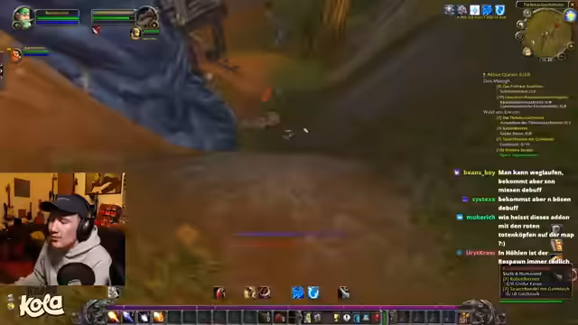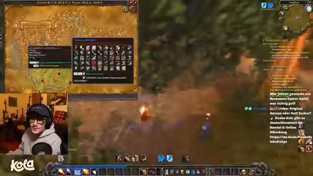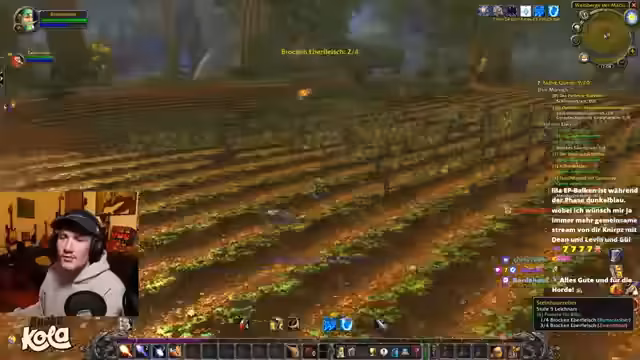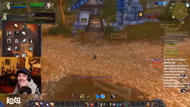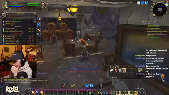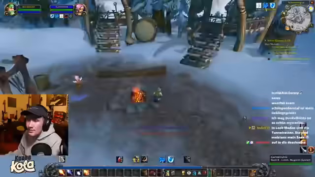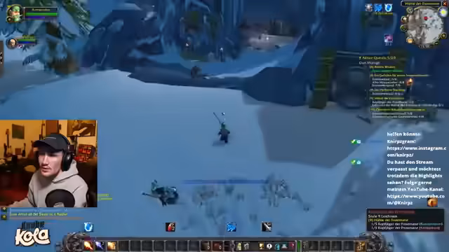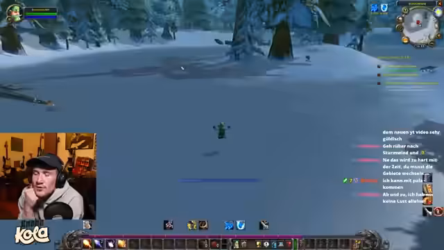 03:10:23Mit Zuschauern (u.a. Knobelkurt, Lemons) startet er eine WoW-Gruppe (Priesterin/Paladin/Magier). Sie erkunden die Frostmähnenhöhle, diskutieren Klassen-Skills wie Verwandlung und Frostnova und nutzen In-Game-Mechaniken wie Würfeln für Items. Der Streamer optimiert sein Magier-Setup (Schneider/Verzauberer-Berufe) und plant Dungeons wie Todesminen.