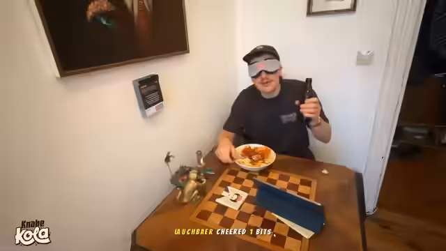 03:26:20Beim Versuch, einen Teller herauszunehmen, lässt der Streamer versehentlich ein Glas fallen, das zerbricht. Er muss nun die Scherden beseitigen, was ihm ohne Sicht weitere Schwierigkeiten bereitet. Gleichzeitig bereitet er sich darauf vor, das fertige Essen für seine Freundin zu servieren, hofft aber, dass sie nicht bemerkt, dass er blind gekocht hat. Der Stream endet mit seiner Entscheidung, an den PC zu wechseln, um weitere Aktionen zu zeigen.