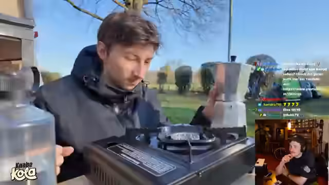 02:52:34Der Streamer beginnt mit einem Blindkoch-Experiment, wobei er Zutaten wie Olivenöl, Knoblauch und Tomatensauce sucht und vermischt. Er hat Schwierigkeiten, die Herdplatten zu bedienen und stellt mehrmals fest, dass etwas heiß wird oder verbrennt könnte. Während des Kochprozisses äußert er wiederholt Unsicherheit über die korrekte Menge und Position der Zutaten, was zu einigen chaotischen Szenen in der Küche führt.
