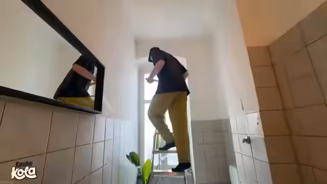 01:07:07Der Streamer beschäftigt sich mit der Montage einer Gardinenstange im Badezimmer. Es geht dabei um die Positionierung der Stange, die bestehenden Löcher und die ungleichen Kanten. Der Handwerker ist unsicher über die exakte Höhe und Ausrichtung der Stange und experimentiert mit verschiedenen Lösungsmöglichkeiten, um die Montagevorgaben zu erfüllen.