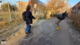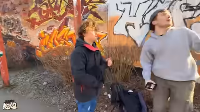 01:19:53Die ersten Kletterversuche gestalten sich als schwierig und gefährlich. Ronny, der klettern soll, zeigt deutlich Respekt und Angst vor der Höhe. Der Streamer gibt ihm Sicherheitsanweisungen und unterstützt ihn. Da eine alleinige Kletternutzung erfolglos bleibt, diskutieren sie alternative Methoden, darunter das Erstellen einer improvisierten "Räuberleiter" durch Aufeinanderschultern oder das Bitten von Passanten um Hilfe, wie eine Leiter.