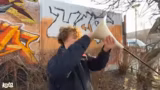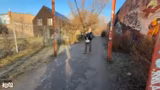01:09:06Nach dem Durchqueren des industriellen Geländes erreichen die beiden den Zielort des Geocaches. Es handelt sich um ein hohes Tor mit einem Cache, der sich am oberen Ende befindet. Zunächst erkunden sie die Umgebung und stellen fest, dass nebenan eine Autolackiererei und ein Berufsschulzentrum liegen. Die Herausforderung besteht darin, die Höhe von mehreren Metern zu überwinden, um an den Cache zu gelangen, und sie beginnen mit ersten Kletterversuchen.