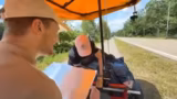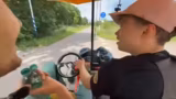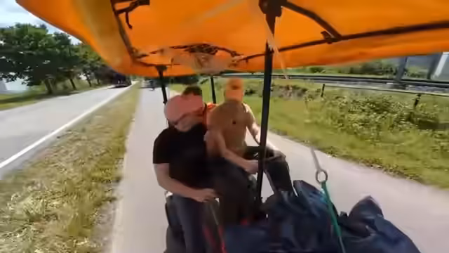 04:02:25Die Gruppe ist bei etwa 13 km/h unterwegs und unterhält sich über verschiedene Themen. Es wird eine Wette ausgeschrieben, wer wann ein Kind bekommen wird. Der Streamer erwähnt, dass er eine Gitarre, zwei Becken, eine Salami und sechs Packungen Holi bei einer Weltumrundung auf einem Catcar geholfen habe. Die Gruppe fährt engen Kurven und findet das dynamisch.