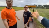 07:13:53Die Gruppe wird von der Polizei angehalten, weil sie nicht korrekt auf dem Fahrradweg unterwegs sind. Die Situation eskaliert leicht, da die Autofahrer ungeduldig sind und die Streamer beleidigen. Die Polizei kontrolliert die Ausweise der Gruppe, was zu Stress und Aufregung führt. Die Streamer diskutieren über die Verkehrsregeln in den Niederlanden und ihre Erfahrungen mit der lokalen Bevölkerung.