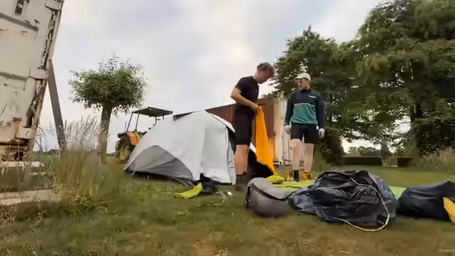 00:03:22Die Nacht im Zelt gestaltet sich für die Teilnehmer unterschiedlich. Einer von ihnen leidet unter Schlaflosigkeit wegen des Koffeins, während andere tief und fest schlafen werden. Es wird über verschiedene Strategien zum Einschlafen gesprochen und auch humorvolle Herausforderungen wie die Frage 'Wer kann länger nicht duschen?' angesprochen. Die Nacht bietet不仅是 Einsicht in die körperlichen Belastungen der Tour, sondern auch in die besondere Dynamik der Gruppe.