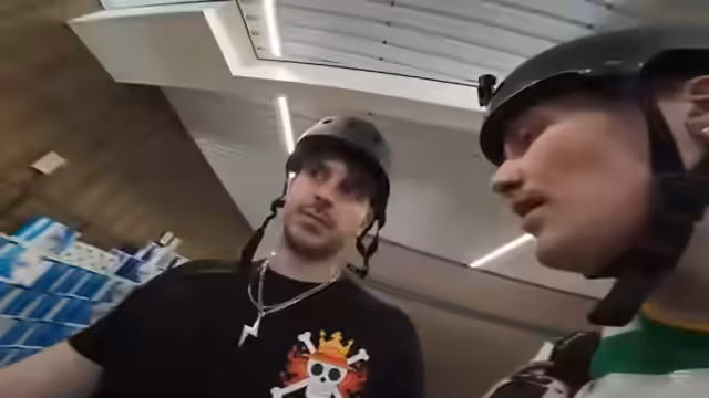 00:12:22Die Streamer zeigen ihre Ausrüstung, darunter Helm, Knieschoner, Ellenbogenschutz und spezielle Socken. Es wird deutlich, dass sie nicht auf alles vorbereitet sind, insbesondere fehlt ein Werkzeug für mögliche Reparaturen an den Inlinern. Nachdem sie die Schuhe angezogen haben, beginnt die erste Testfahrt mit einigen Stürzen und Unbehagen.