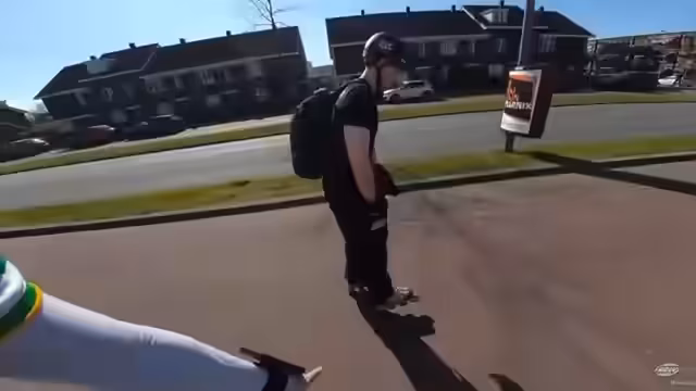 01:55:14Zeus lernt die T-Stop-Bremstechnik kennen, aber es fällt ihm schwer, diese meistern. Knirpz zeigt ihm genau, wie man die Beinposition korrekt einnimmt und wie man ohne Überlastung bremst. Sie sind sich einig, dass es am Anfang schwierig ist, aber mit Übung wird es besser. Ihre Route führt sie weiter durch die flache niederländische Landschaft, wobei sie immer wieder kleine Herausforderungen meistern.