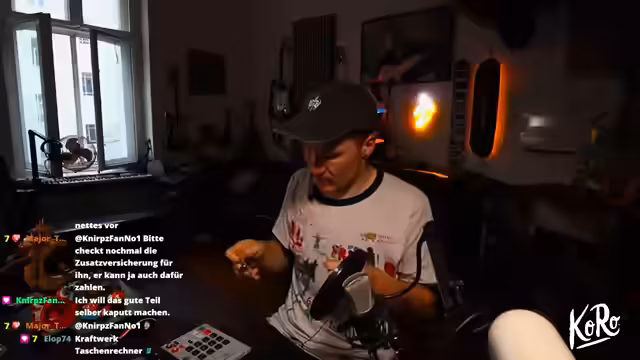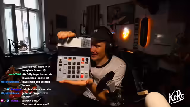 01:35:00Für den nächsten Stream gibt es eine geplante Kooperation mit Terry Berenson, bei der auf Deutsch und Englisch gestreamt wird. Gleichzeitig präsentiert der Streamer seine neue Anschaffung: einen Teenage Engineering KO2 Sampler und einen OP1 Field Desk. Er erklärt die Funktionen des Samplers und zeigt seine neuen Geräte, die er mit älterem Equipment finanziert hat.
