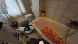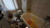 03:25:01Leo tauscht kurz den Akku der Kamera und stellt sich vor, wie es wäre, wenn er in die Badewanne fallen und alle Bomben zerplatzen würden. Er entscheidet sich dagegen, da die Bomben für den Flohmarkt am nächsten Tag benötigt werden. Er überlegt, ob er die Farbbomben heute noch verpackt oder in der Badewanne belässt, und plant, die Wanne abzudecken, falls welche in der Nacht platzen sollten.