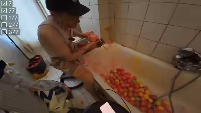 05:07:34Es wird festgestellt, dass keine Gedanken darüber gemacht wurden, wie die Farbbomben transportiert werden sollen. Der Streamer fragt sich, ob das Gewicht der Ballons aufeinander ein Problem darstellen könnte und ob sie platzen könnten. Die Idee, die Ballons vor Ort spontan zu füllen, wird verworfen. Es wird überlegt, schwarze Müllsäcke zu verwenden, aber Bedenken wegen Hitzeentwicklung werden geäußert. Der Streamer versucht erneut, sich an den perfekten Knoten zu erinnern, und äußert Frustration darüber, dass sich immer ein kleiner Ball bildet. Es wird überlegt, die Bomben zu verkleiden, damit der Taxifahrer nicht sieht, was es ist. Die Knoten haben eine kleine Wulst, was dem Streamer Sorgen bereitet. Es wird vermutet, dass er die Knoten falsch macht, aber es wird gehofft, dass sie halten. Der Streamer überlegt, ob er die Knoten einmal zu viel twistet und kündigt an, gleich etwas zu trinken zu holen. Es wird erwähnt, dass die Küche sauber ist. Der Streamer hat das Gefühl, den perfekten Knoten vergessen zu haben und dass alle Knoten eine dicke Wulst bekommen. Er grüßt die Familie der Zocker und betont, dass er alles gibt. Es wird festgestellt, dass die Badewanne etwas Besonderes hat und dass es verrückt aussieht. Einige Bomben sind bereits geplatzt, aber es wird weitergearbeitet.