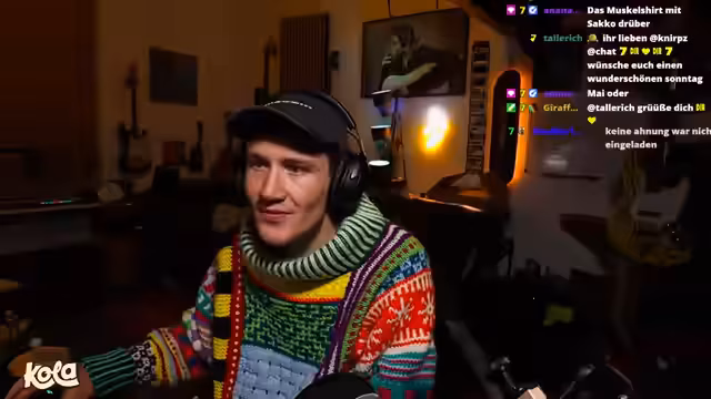 02:36:57Es werden Ideen für ein "Techno-Fahrrad" diskutiert, wobei die Herausforderungen der Umsetzung im Straßenverkehr, insbesondere nach früheren kritischen Rückmeldungen zum Handygebrauch beim Radfahren, thematisiert werden. Die Vision ist es, Musik während der Fahrt zu hören und diese auch für die Zuschauer zugänglich zu machen, idealerweise über Kopfhörer und nicht über laute Boxen. Ein Fahrradanhänger mit Partybox und Knabe-Cola-Branding wird ebenfalls als Option genannt. Der Streamer präsentiert zudem einen von seiner Mutter gestrickten Wollpullover und eine passende Mütze, die als bequemes "Chill-Outfit" beschrieben werden. Die handwerklichen Fähigkeiten der Mutter werden bewundert. Des Weiteren wird ein Outfit für die Stream Awards besprochen, wobei der Streamer ein bereits vorhandenes, elegantes Ensemble von Ronnys Hochzeit in Betracht zieht, um nicht jedes Jahr ein neues Outfit kaufen zu müssen.