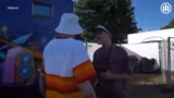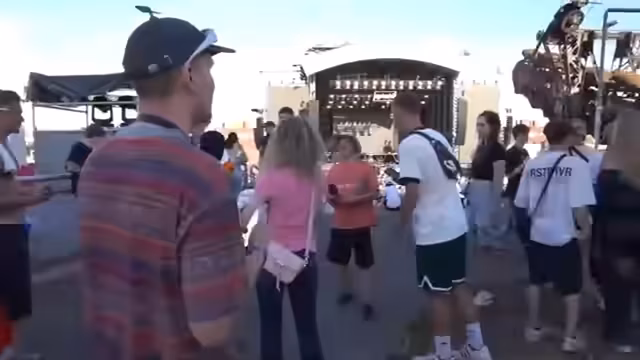 02:38:00Nachdem das finale Video für die Freigabe abgenommen wurde, bereitet sich das Team auf die Weiterreise zur Mainstage vor. Mit einem Jeep und einem speziellen Bollerwagen, der das Starlink-Internet und die Übertragungstechnik beherbergt, geht es los. Die Stimmung ist aufgeregt, da das Video bald auf der großen Bühne vor Tausenden von Festivalbesuchern gezeigt werden wird. Der Countdown läuft für diesen entscheidenden Moment.