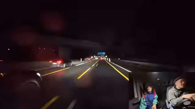05:14:23Die Streamer fahren in der Nacht weiter Richtung Luxemburg. Die Fahrt wird als entspannt beschrieben, da der Spurassistent und der Tempomat den Fahrkomfort erhöhen. Die Lichtverhältnisse sind schwierig, aber eine Kamera an der Frontscheibe verbessert die Sicht. Dabei werden diverse Themen wie Umweltdebatten, die Reperatur von Schuhwerk und das plötzliche Auftreten eines Gerstenkorns im Auge angesprochen, während der Raid von Ronnyberger für Aufsehen sorgt.