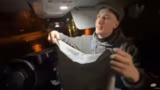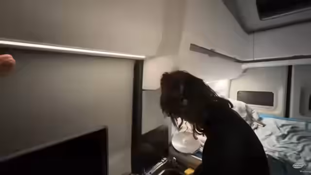 03:07:34Während der Fahrt wird der Innenspace des Campers geordnet. Es wird gezeigt, wie versucht wird, die gekauften Lebensmittel zu verstauen und die Kabel und persönlichen Gegenstände zu sortieren. Dabei wird deutlich, dass trotz des großen Platzes der Camper schnell unübersichtlich wird. Die Streamer diskutieren über die Installation einer Power Station, um den ständigen Zugang zu Strom zu gewährleisten, und machen sich Gedanken über den weiteren Tagesverlauf und das Ziel, Deutschland noch am selben Tag zu verlassen.