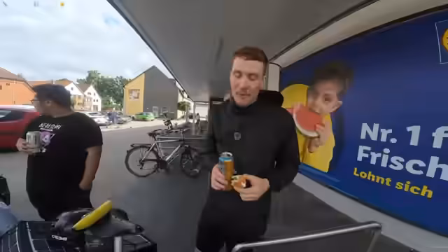 03:35:43Als die Gruppe in Nordstemm ankommt, wird die verbleibende Strecke diskutiert. Die anfängliche Sorge über nochmals 100 Kilometer weicht der Erkenntnis, dass alles geschaffte Wegstrecken die Anstrengung des folgenden Tages reduzieren. Bei einem Supermarkt-Laden wird für eine Versorgungsunterbrechung gesorgt. Der Streamer berichtet von einer erholsamen Nacht und dem Verzehr von Brötchen und Ei, was ihm neue Kraft für die verbleibende Etappe gibt.