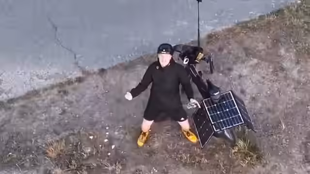 02:06:44Die technische Ausstattung des Fahrrads wurde über die Zeit immer weiter optimiert und umfasst einen speziell breiten Lenker, Halterungen für die Drohnenfernbedienung, ein Navigationsgerät, Snackbags für Proviant und ein Smartphone. Während der Fahrt können Zuschauer für einen Geldbetrag Nachrichten vorlesen lassen, die dann im Stream vorgelesen werden. Alles ist darauf ausgelegt, einen reibungslosen und interaktiven Livestream während der Fahrt zu ermöglichen.