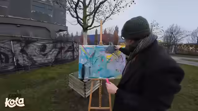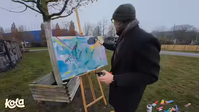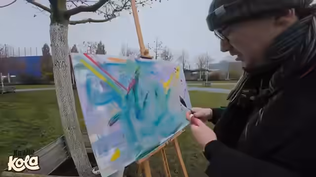 00:40:57Nachdem der Streamer im Park angekommen ist, beginnt er mit dem Malen. Er stellt klar, dass es heute um expressionistisches Malen geht – das Ziel ist nicht, äußere Eindrücke abzubilden, sondern innere Gefühle auszudrücken. Er nutzt verschiedene Pinsel als 'Sprachrohr' und betont, dass es keine Regeln gibt: Farben werden direkt auf die Leinwand übertragen, ohne Zwischenschritte wie eine Farbpalette. Er experimentiert mit weißen Farben und betont die Intuition.