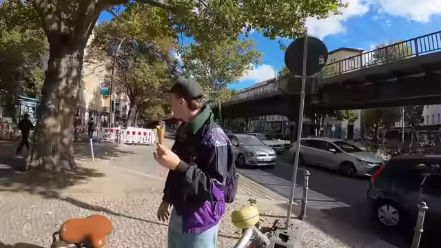 00:25:14Der Streamer holt sich ein Pistazieneis und genießt es während der Fahrt. Er lobt die Eisdiele und macht an der Ampel Werbung dafür. Er erzählt, dass er schlecht im Eis essen ist und es immer runterläuft. An der Ampel grüßt er die Leute und erklärt seine Tätigkeit als OKF. Er erwähnt Termine wie die Deutschlandtour und überlegt, ob er einfach so vier Tage losfahren soll. Er erinnert sich an früher, als man die Telefonnummern seiner Freunde auswendig kannte, um sich zum Spielen zu verabreden. Er zählt die Teilnehmer der Gaming-Session auf. Er muss darauf achten, nicht zu spät zu kommen. Er entschuldigt sich für seine schmierige Hand und sucht nach einem Taschentuch. Er fragt mehrere Passanten, bis er schließlich eines bekommt. Er bedankt sich und bezeichnet die erfolgreiche Suche als abgeschlossene Sidequest. Er fragt nach dem Ergebnis der Museumsschnitzeljagd und ob er schon Geld bekommen hat. Er erklärt, warum er Leitungswasser dabei hat. Er lobt das schöne Miteinander in Berlin und betont, dass Freundlichkeit erwidert wird. Er erwähnt, dass er einen Tag Pause gemacht hat und die Batterien wieder aufgeladen sind. Er bedauert, nicht beim Berlin Paddle Battle gewesen zu sein, da es sein Lieblingsevent in Berlin ist. Er fragt den Chat nach der perfekten Anzahl an Streams pro Woche und betont, dass man sich auch um andere Sachen kümmern muss.
